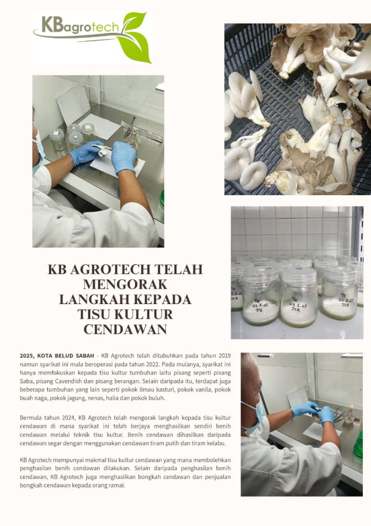 KB Agrotech juga berperanan sebagai: – �� Pusat Latihan Kultur Tisu Cendawan – �� Hab Pembelajaran Bioteknologi Pertanian – �� Destinasi Agropelancongan Berasaskan Cendawan